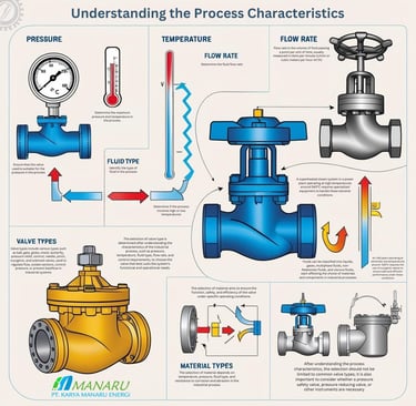 Langkah pertama dalam memilih valve yang tepat adalah dengan memahami kondisi operasional yang ada di lapangan, seperti tekanan kerja, suhu fluida, dan jenis fluida yang akan mengalir melalui sistem. Setiap faktor ini memengaruhi pilihan bahan dan desain valve yang digunakan. Misalnya, suhu yang sangat rendah atau tinggi membutuhkan material khusus untuk mencegah kerusakan atau kegagalan struktural pada valve. Selain itu, jenis fluida, seperti gas atau cairan yang bersifat korosif atau abrasif, memerlukan ketahanan bahan terhadap kerusakan akibat reaksi kimia atau gesekan.