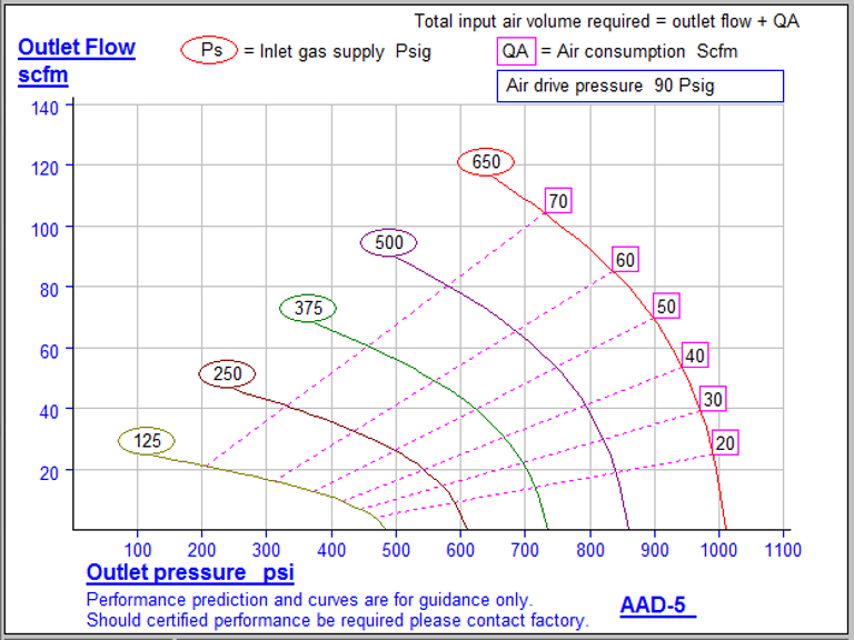The Haskel AAD-5 Air Amplifier is a double-acting, single-stage pneumatic booster designed for industrial applications requiring reliable and efficient air pressure intensification. With a nominal pressure ratio of 5:1, this model delivers outlet pressures up to 1250 PSIG, making it suitable for a variety of air and inert gas boosting operations.