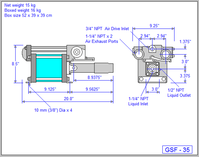 The Haskel Model GSF-35 is a high-capacity, air-driven liquid pump engineered for demanding industrial applications requiring reliable hydraulic pressure generation. Equipped with a nominal pressure ratio of 35:1 and a single air head configuration, the GSF-35 delivers consistent fluid pressures up to 4375 PSIG, making it an excellent choice for high-flow, moderate-to-high pressure applications.