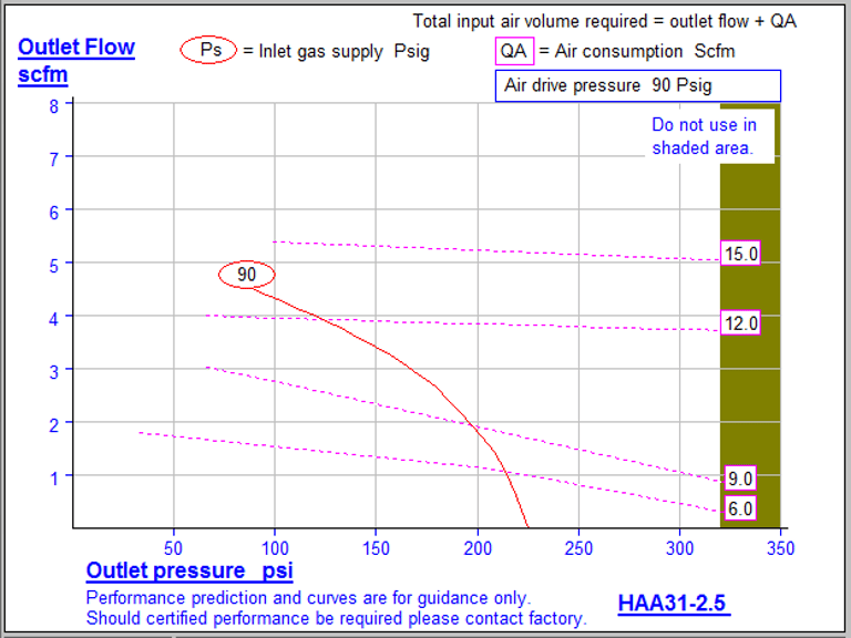 (Pa = air drive pressure, Ps = gas supply pressure)Minimum Air Drive Pressure: 40 psi