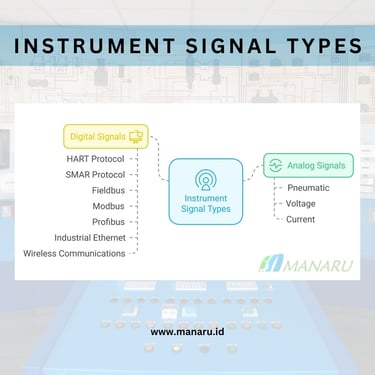 Beberapa standar sinyal instrumen yang didefinisikan oleh asosiasi standar atau standar proprietari terbagi menjadi dua kategori utama, yaitu sinyal analog dan sinyal digital.