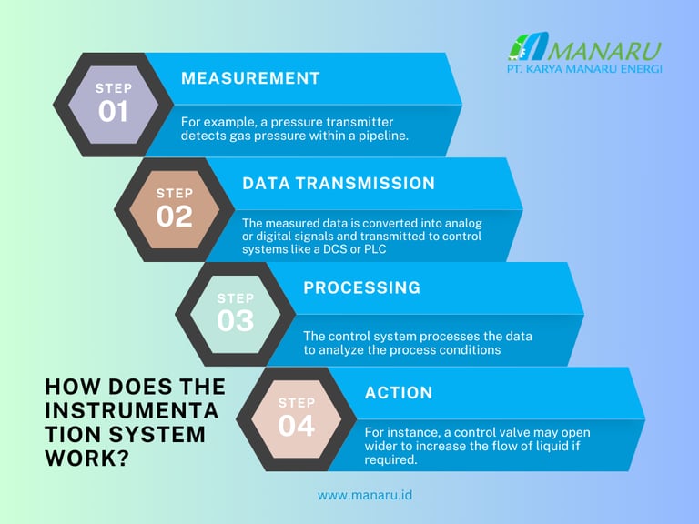 Secara sederhana, sistem instrumentasi adalah kumpulan perangkat yang bekerja bersama untuk mengukur parameter tertentu dari suatu proses, memproses data tersebut, dan memberikan output berupa sinyal yang dapat digunakan untuk pengambilan keputusan atau pengendalian otomatis. Parameter ini dapat mencakup suhu, tekanan, aliran, tingkat cairan, komposisi kimia, hingga densitas suatu fluida.
